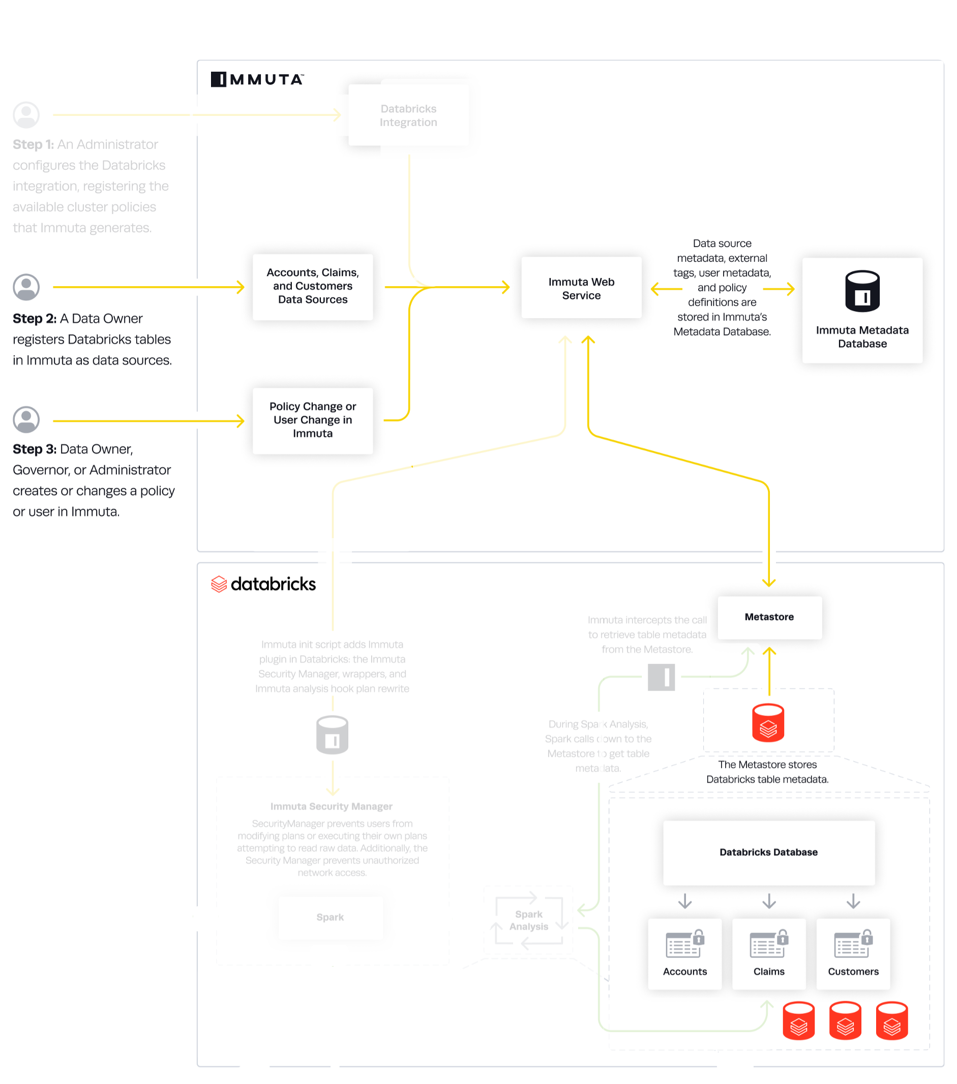 Immuta allows you to author subscription and data policies to automate access controls on your Databricks data.