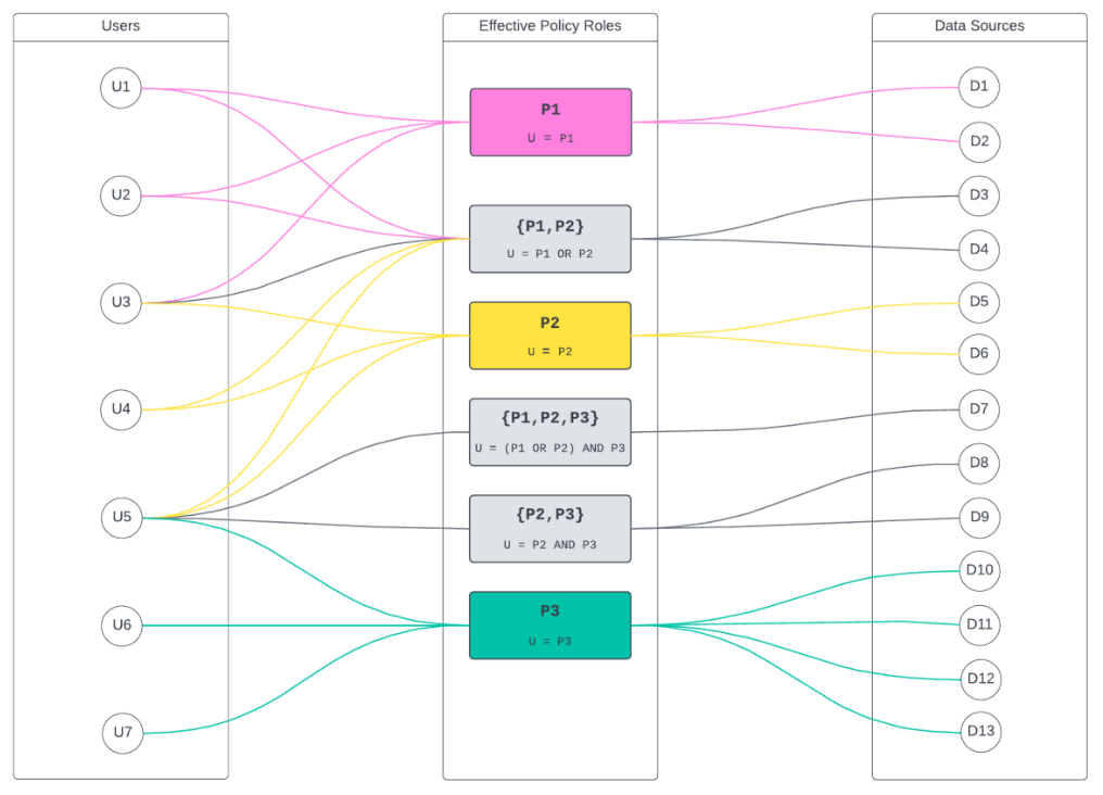 This only happens once up front. After that, changes are incremental based on policy changes and user attribute changes (smaller updates), unless there’s a policy that makes a sweeping change across all users. The addition of new users who have access becomes much more straightforward also due to the fact above. User’s access will be granted via the intermediate role, and, therefore, a lot of the work is front loaded in the intermediate role creation.