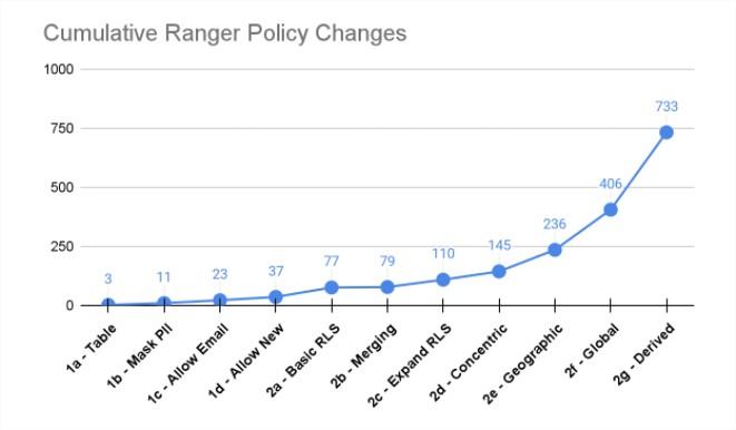 In a scalable solution such as Immuta, that count of policy changes required will remain extremely low, providing the scalability and evolvability. GigaOm researched this exactly, comparing Immuta’s ABAC model to what they called Ranger’s RBAC with Object Tagging (OT-RBAC) model and showed a 75 times increase in policy management with Ranger.