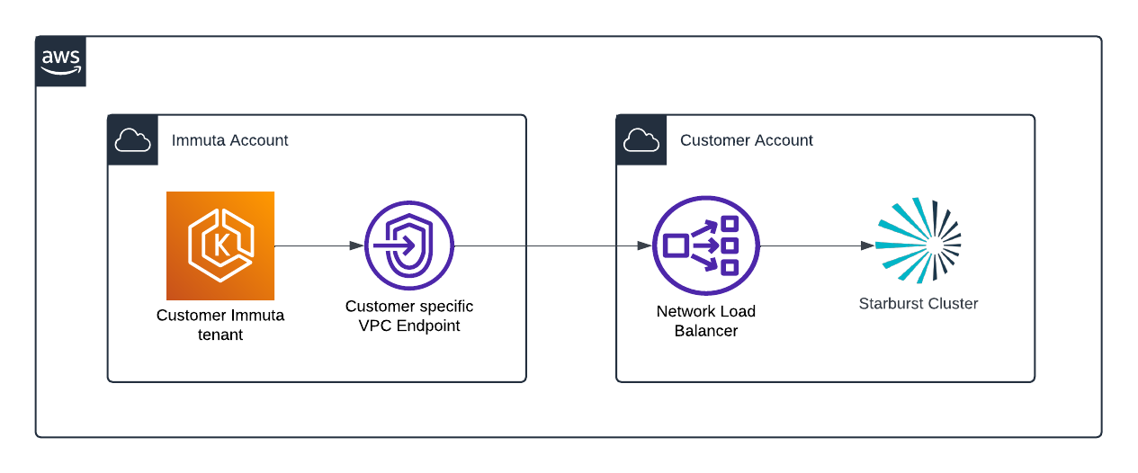 AWS PrivateLink provides private connectivity from the Immuta SaaS platform to Starburst (Trino) Clusters hosted on AWS. It ensures that all traffic to the configured endpoints only traverses private networks.